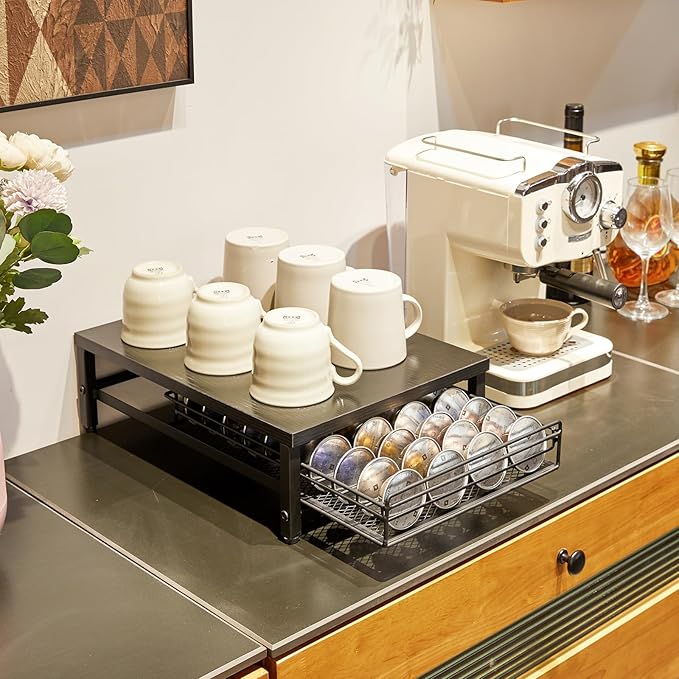 - 【STURDY AND SIMPLE DESIGN】: The capsule pods storage organizer gives your quality coffee a quality storage. This coffee pod holder is firm and space saving. You can also put your coffee brewer or coffee maker on its large top surface.