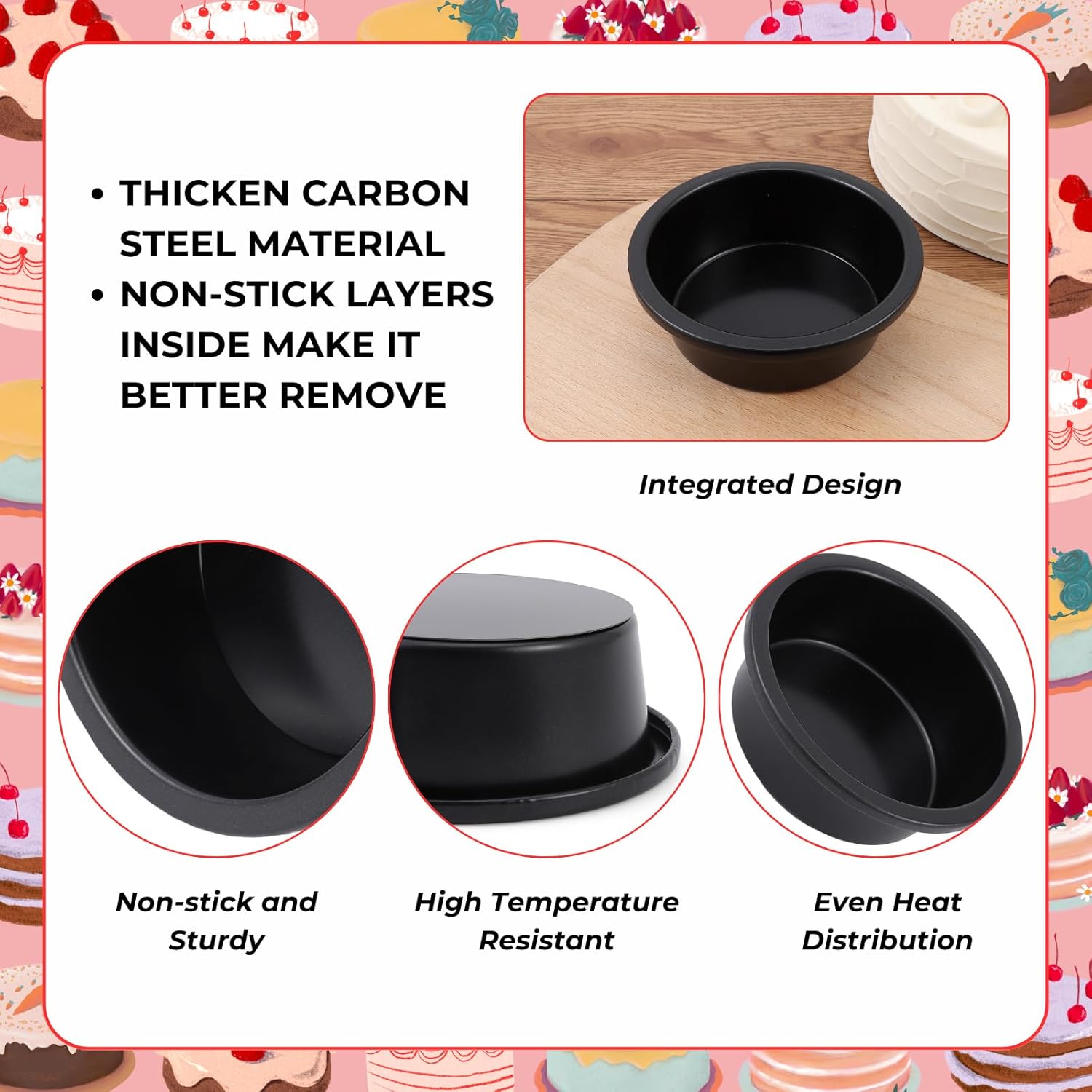 - š° Package Include: You will receive 4pcs 4 inch round cake pans, which is totally enough for daily use or party to cook the delicious dessert. The rolled edge design is smooth and easy to get.