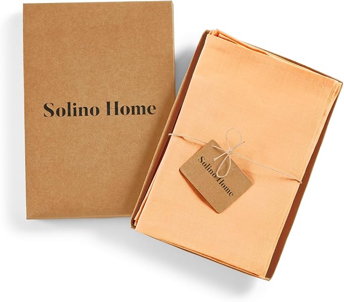 Solino Home Linen Napkins Set of 4-100% Pure Linen Peach Dinner Napkins Cloth 20 x 20 Inch - Fete, Handcrafted and Machine Washable
