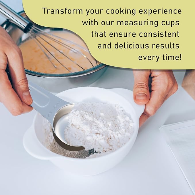 - 【Durable】The integrated molded 304 stainless steel measuring cup is designed for sturdiness and durability, with a solid construction that can withstand regular use without breaking or warping