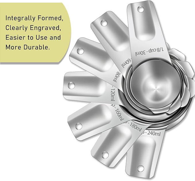 - 【Durable】The integrated molded 304 stainless steel measuring cup is designed for sturdiness and durability, with a solid construction that can withstand regular use without breaking or warping