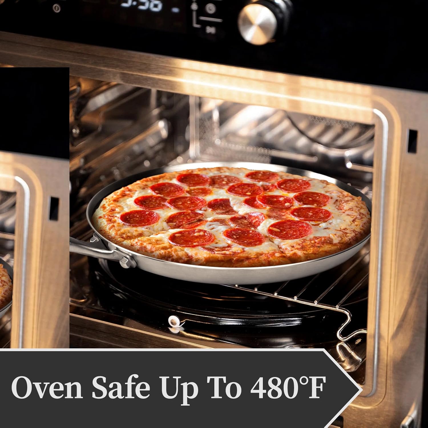 - ăGive You A Healthy and Safe Diet LifeăThe Large 12 inch stainless steel crepe pan is made of high quality food grade stainless steel, which is acid resistant and corrosion-resistant, and does not react with food, brings you a healthy cooking and diet environment. Innerwell stainless steel pancake pan with honeycomb texture has the feature of scratch resistance and wear resistance, no longer need to worry about food contamination due to aluminum metal release. The crepe pan nonstick gets SGS approved, BPA free, PFOA free, lead and cadmium free