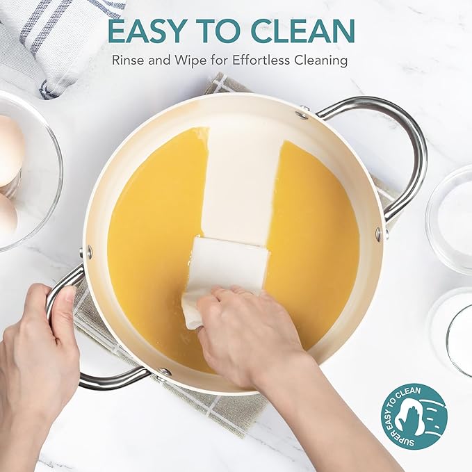 - Superior Nonstick Performance: The advanced nonstick coating prevents food from sticking, making cleaning a breeze and reducing oil use by 90%. Its durability ensures long-lasting nonstick performance, maintaining its quality over time. Hand washing recommended.