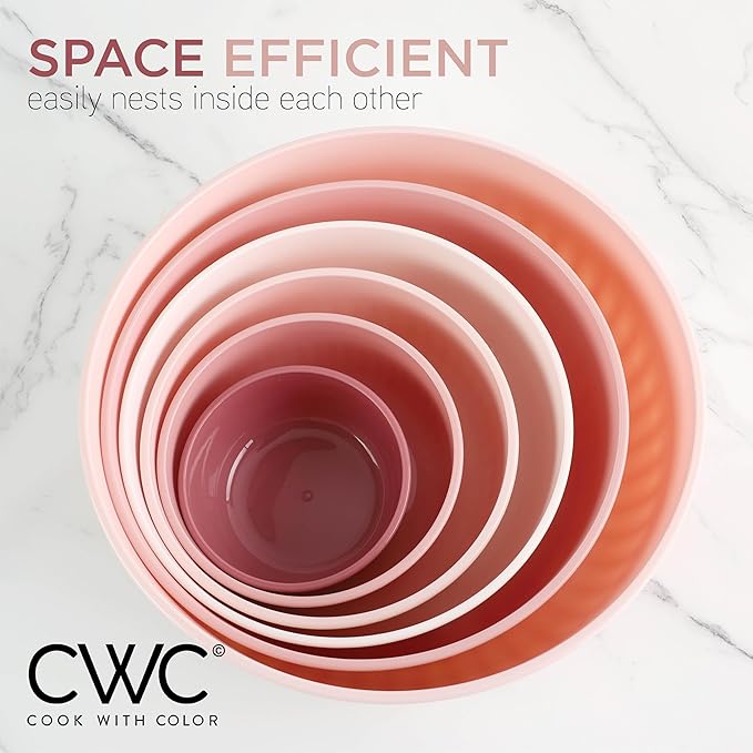COOK WITH COLOR Prep Bowls with Lids- Wide and Deep Nesting Plastic Small Mixing Bowl Set with Lids, 12 Piece Set - Wide Bowls, Pink