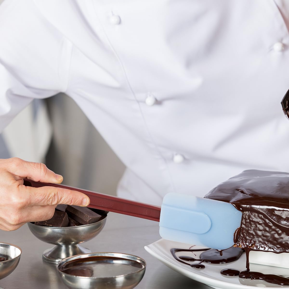 - STURDY & FLEXIBLE: This high heat spatula set, is sturdy to stir sticky dough, and soft on the edges to cleanly scrape batter or button from your bowl; Edges of these rubber spatulas are thin and flexible, working fine at scraping, perfect to reach the bottom of mixer bowls (which have high sides) without getting your hands sticky. Durable and strong, these commercial grade rubber spatulas can serve for years with no need for special care.