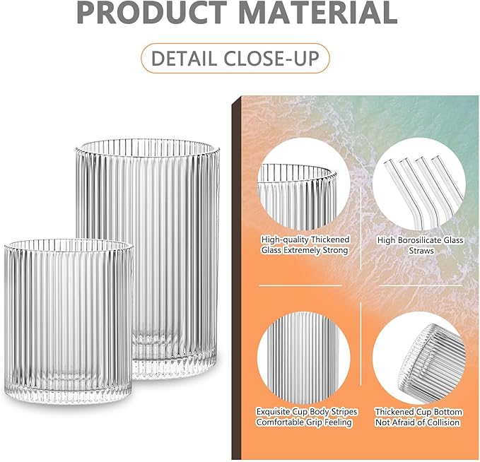- 【BUY WITH CONFIDENCE】Secure Packaging and Customer Satisfaction - We prioritize the safety of our products during shipping. Our ribbed glassware set is carefully packaged in thickened packaging to prevent breakage. We strive to provide you with a perfect experience, and if you receive an unsatisfactory cup, our dedicated customer support team is available to provide a 100% satisfactory solution within 24 hours. Buy with confidence and enjoy the benefits of our exceptional glass cups.