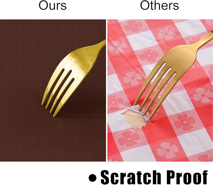 - [Sturdy & Functional] The surface of our tablecloth features premium vinyl material, which makes it more sturdy and protects your table from everyday wear and tear, and tableware scratches