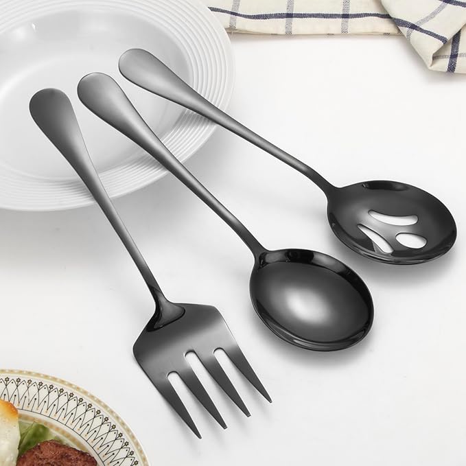 Lazycorner Large Serving Utensils,12 Pcs Stainless Steel Serving Set with Serving Spoons,Serving Fork,Serving Tongs,Polished Serving Utensil Set for Buffet Parties Home,Dishwasher Safe(Black)