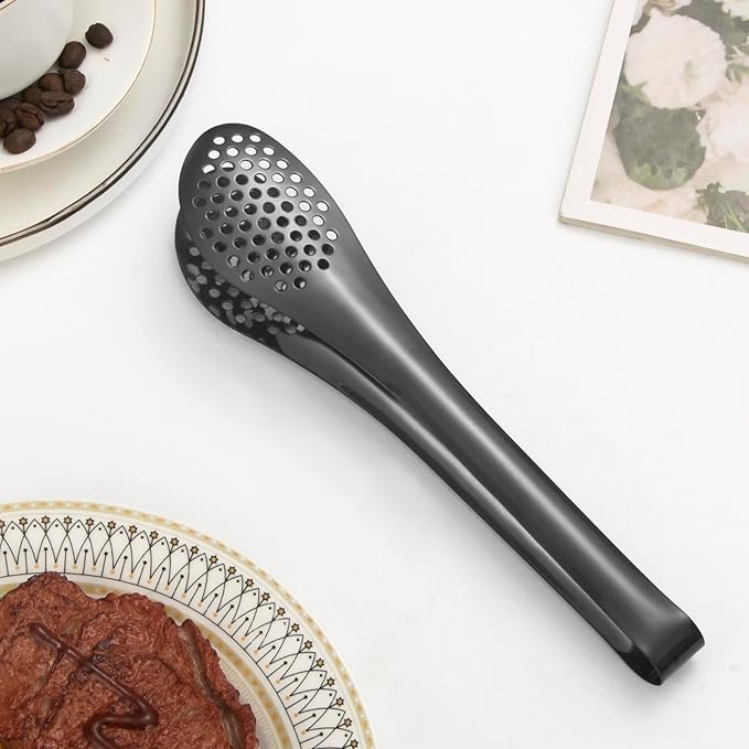 - 12 Pieces Black Serving Flatware Set: from this package you will receive 4pcs slotted serving spoons, 4pcs serving spoons, 2pcs serving fork, and 2pcs serving tongs