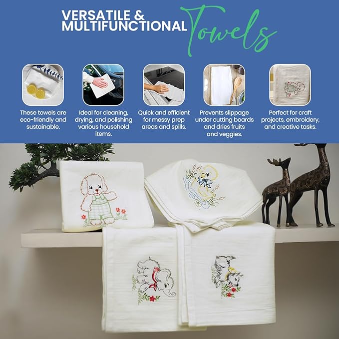 - ✅ Embroidery & Craft-Ready – Smooth & Durable Finish Perfect for crafters! Ideal for embroidery, HTV, DIY printing, and custom kitchen gifts. Highly rated among buyers looking for "flour sack towels for crafts" and "blank flour sack towels for embroidery".