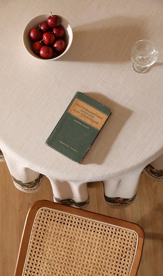 - Package Includes: 1pc round tablecloth. The tablecloth in the display picture hangs about 40cm (16 inches) on one side. Please purchase the corresponding size for the desired matching effect. The above suggestions are for reference only; please choose based on actual measurements.