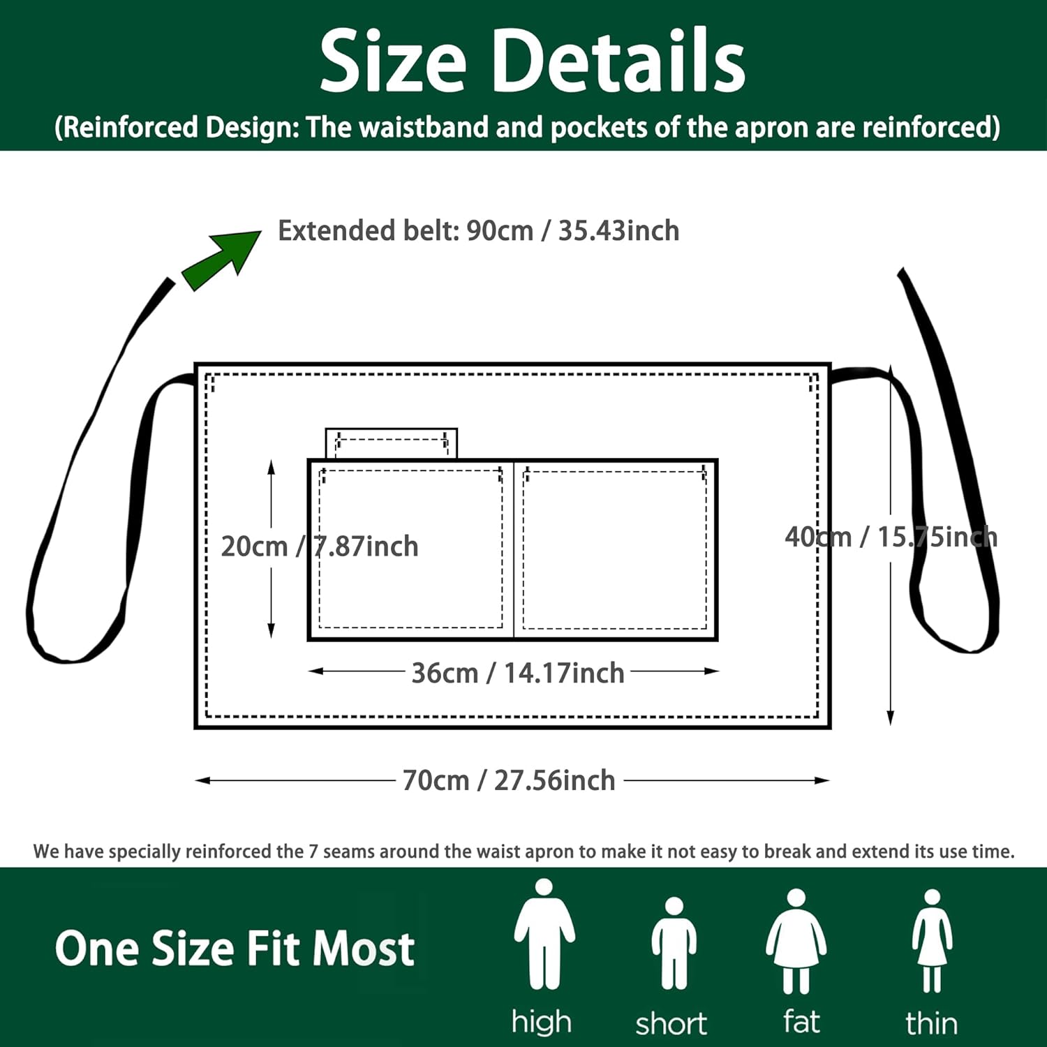 - Extended Belt Design - The waitress apron belt extends to 90cm (35.83 inch), long belt can be easily adjusted to fit most body types of men and women