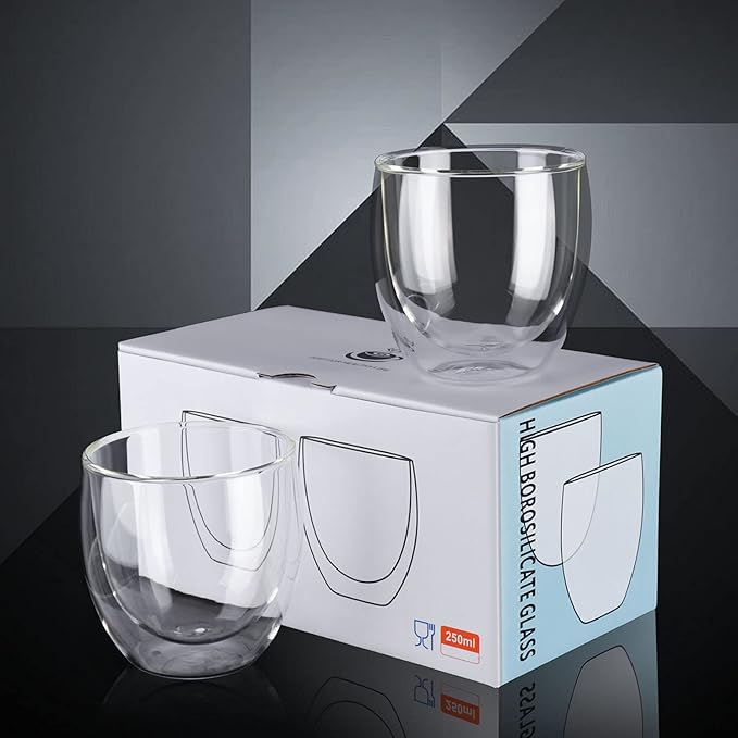 - Unique Double Wall Design - Insulated espresso shot glasses has a sleek 2 layer design that creates a dramatic optical illusion and prevents condensation and side heat transfer.