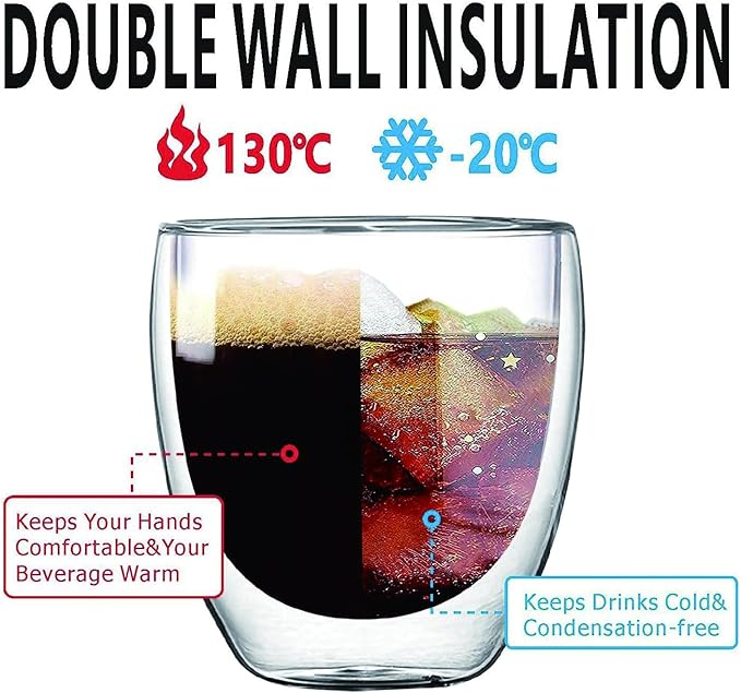 - No Burn Your Fingers - The double wall insulated glass design creates a thermal effect,keeping your drink hot or cold for ideal temperature while the outer glass remains safe to touch.