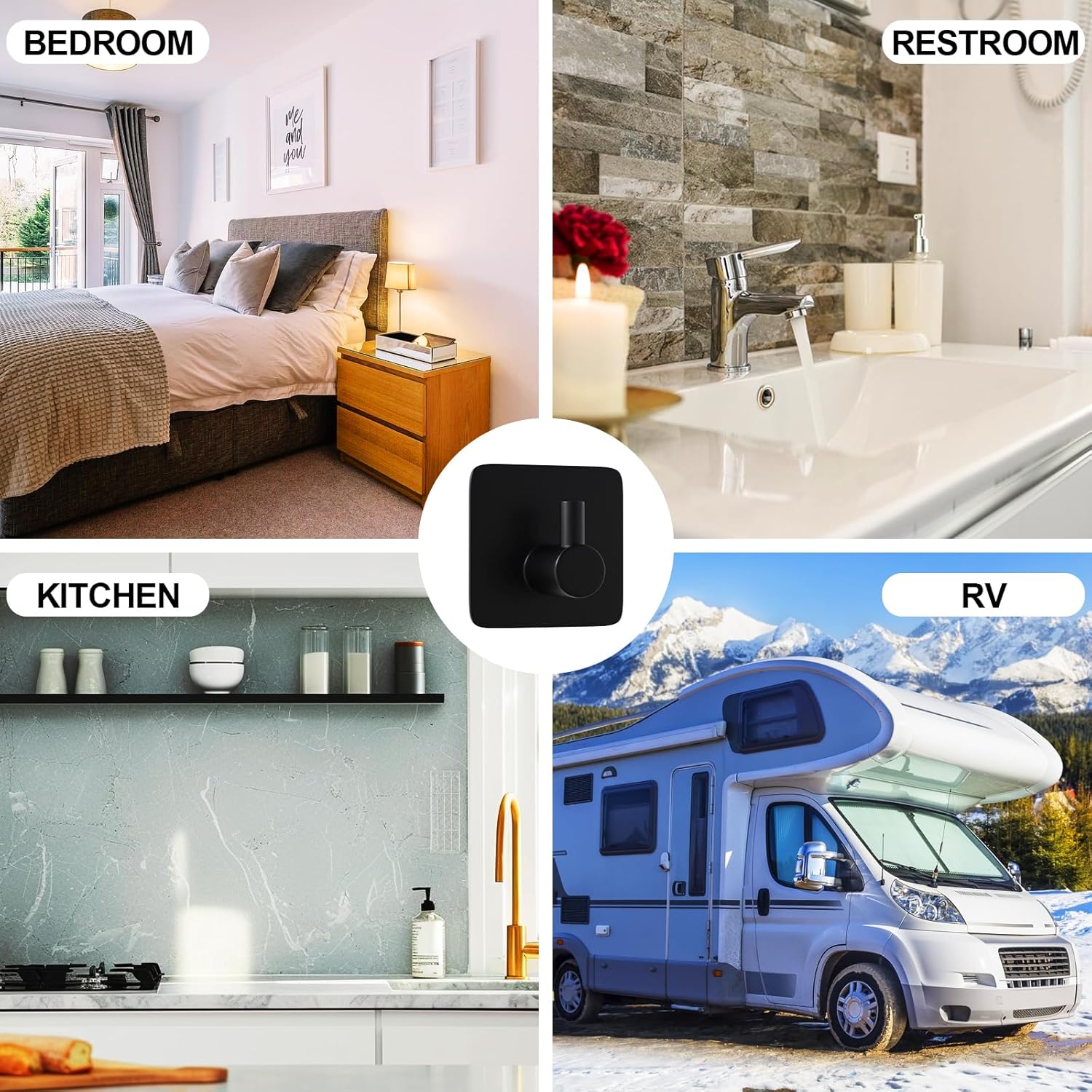 ACNISM Adhesive Hooks Heavy Duty Waterproof 4 Pack, Stainless Steel Stick on Hooks for Hanging Towel, Robe, Coat, Loofah - Bathroom Shower, Kitchen Organizer (Matte Black)