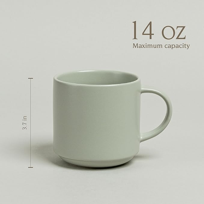over&back Stackable Stoneware Coffee Mugs - 4-Piece Mug Set - Enjoy the Perfect Cup of Coffee, Tea, Latte, and More - Semi-Matte Sage- 14oz