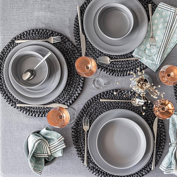 over&back Rim Dinnerware Set - Stoneware Dishes - Comes with 4 Dinner Plates, Salad Plates, Cereal Bowls, and Dinner Bowls - 16-Piece All-Occasion Place Settings - Serves Four - Semi-Matte Charcoal