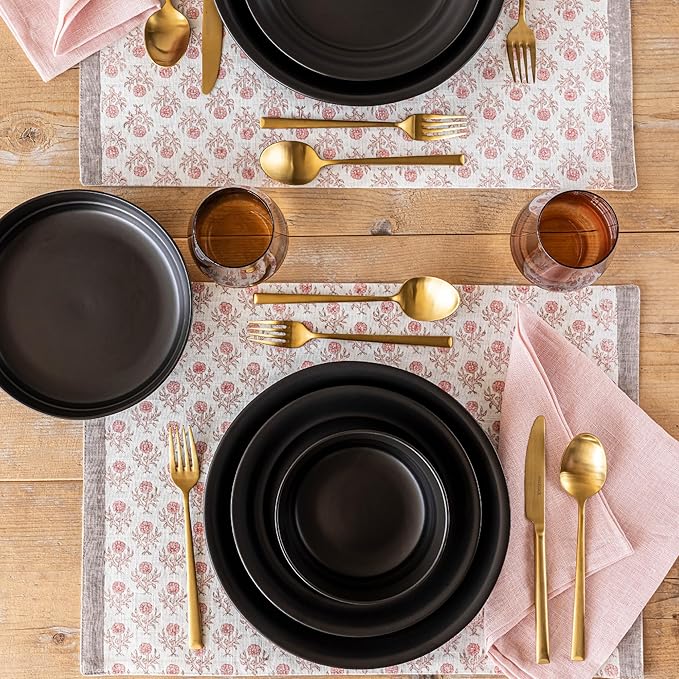 over&back Rim Dinnerware Set - Stoneware Dishes - Comes with 4 Dinner Plates, Salad Plates, Cereal Bowls, and Dinner Bowls - 16-Piece All-Occasion Place Settings - Serves Four - Semi-Matte Black
