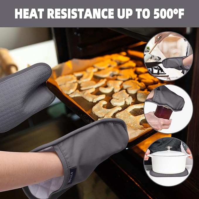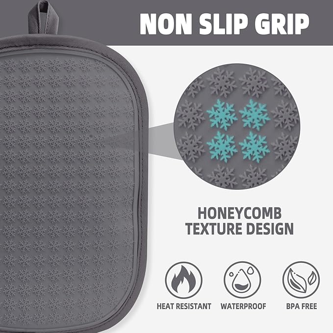 - 【HIGH HEAT RESISTANCE】Experience ultimate protection with our pot holders featuring a surface made from high-quality food-grade silicone. The organic cotton quilted liner of this hot pads for kitchen enhances heat resistance, ensuring your hands are shielded from high temperatures during cooking.They will help shield your hands from heat up to 500F Fahrenheit.