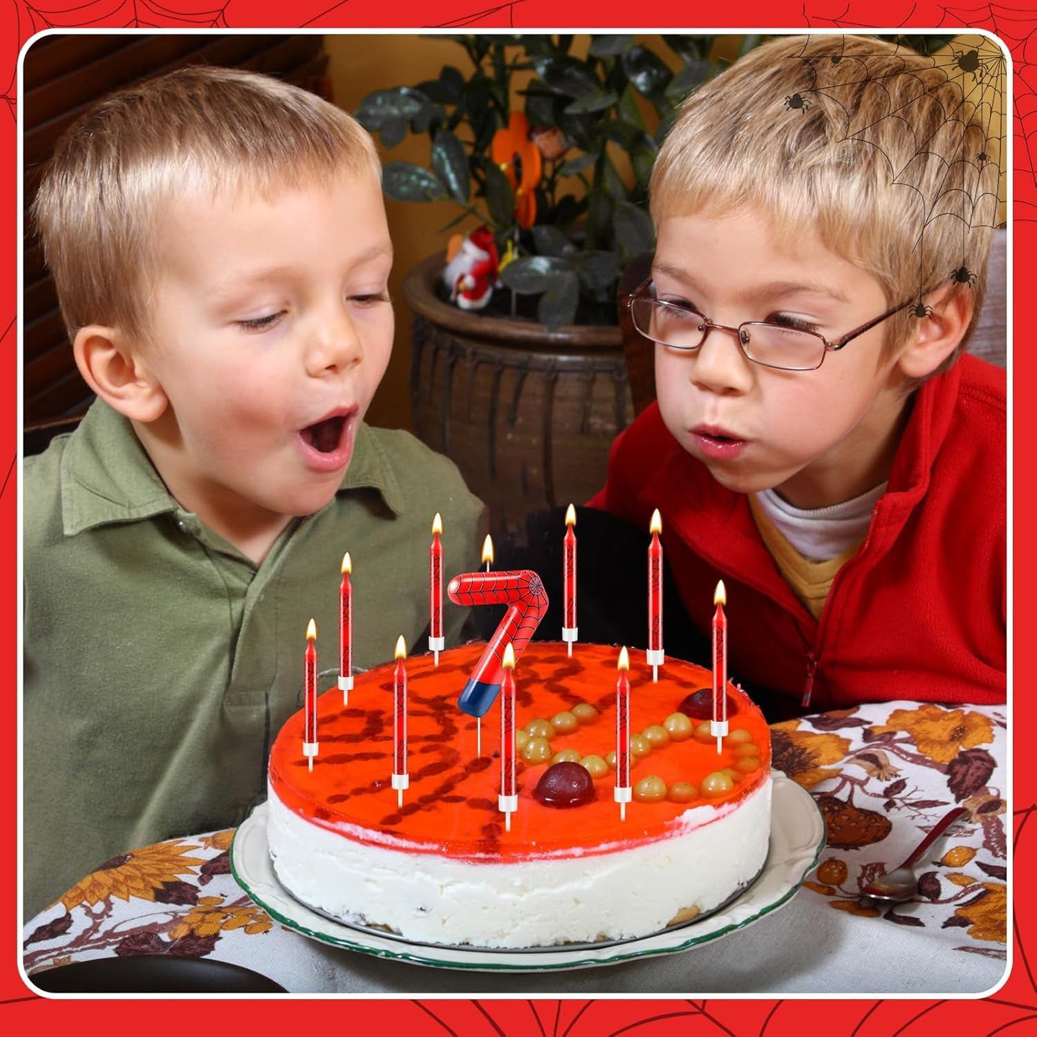 13 Pcs Spider Themed Birthday Candle Set Red Spider Theme Number 7 Candle Cake Topper for Boys Girls Birthday Decoration Spider Party Decoration Supplies (Number 7)