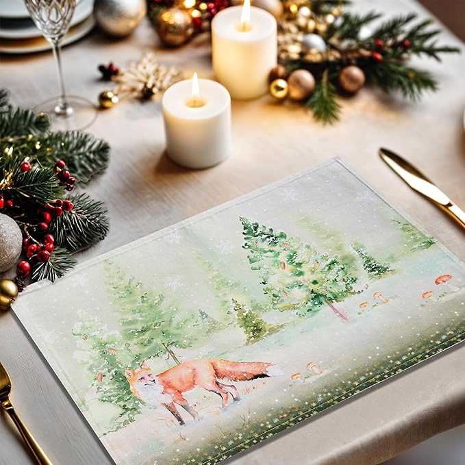 Maison d' Hermine Placemats Set of 4 100% Cotton Washable Cloth Place Mats, Reusable Table Mats for Thanksgiving Christmas Decorations Kitchen Dining Party Wedding (Winter Mornings, 13" x 19")