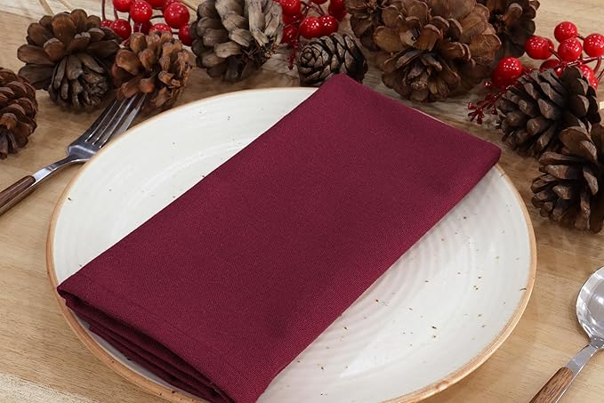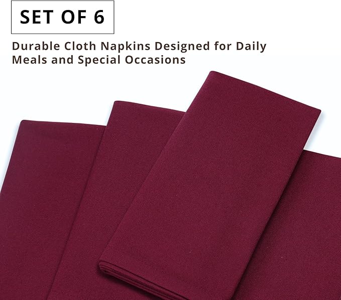 PurpleEssences Set of 6 Cloth Dinner Napkins 100% Cotton 18x18 Inch - Soft Durable Washable - Ideal for Farmhouse Party Christmas Holiday Winter - Perfect Everyday Use Table Linen - Burgundy