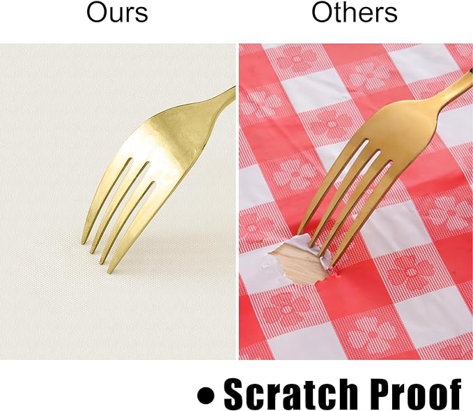 - [Sturdy & Functional] The surface of our tablecloth features premium vinyl material, which makes it more sturdy and protects your table from everyday wear and tear, and tableware scratches