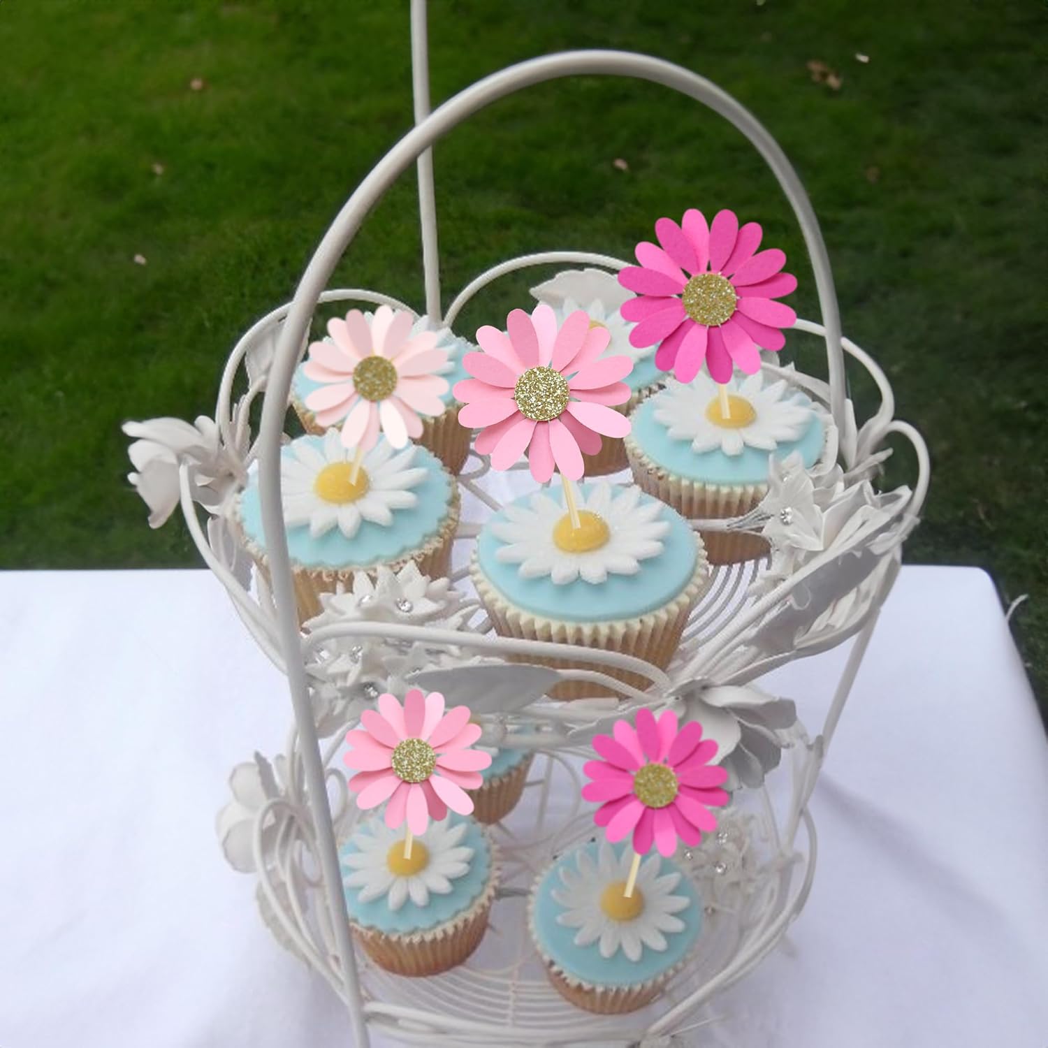 - 【NO Required】: 24Pcs Daisy Flower Cupcake Toppers can put in the cake directly! These Daisy Flower Cupcake Toppers saves your time and super easy to use. You can easily dress up your birthday theme cakes, yes! but don't stop there, put them into desserts, cookies, fruit pieces, appetizers, muffins and so much more!
