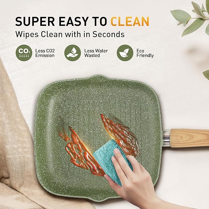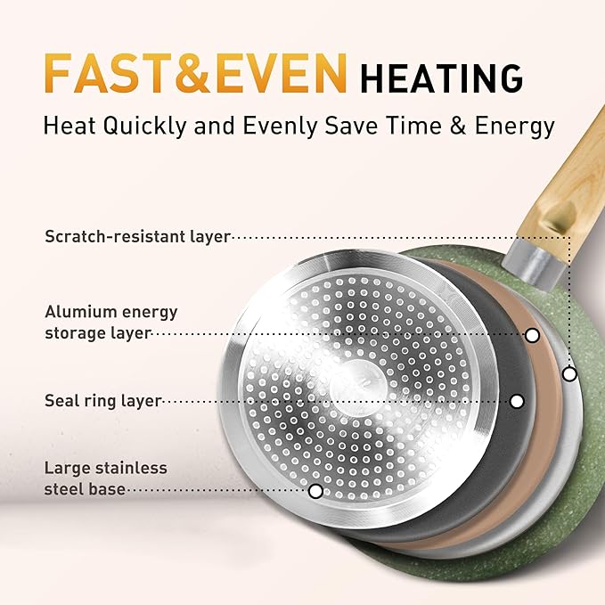 - ššššØš«šš„šš¬š¬ šš„ššš§š®š©: Say goodbye to scrubbing and soaking. Our cookware features a smooth, easy-to-clean surface, ensuring that tidying up is as simple as enjoying your delicious creations. Easy to clean pots and pans set.