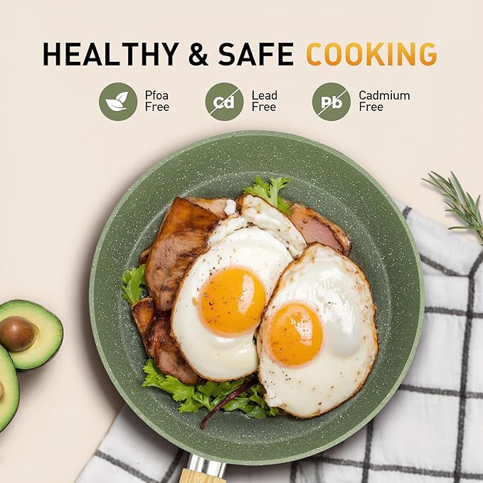 - š šš¬š ššÆšš§ ššššš¢š§š : Experience the peace of mind with our eco-friendly pots and pans set, free of PFOS and PFOA. The superior thermal conductivity ensures even heating, allowing your food to cook uniformly. Shorter cooking times save energy and make every meal preparation efficient and eco-conscious.