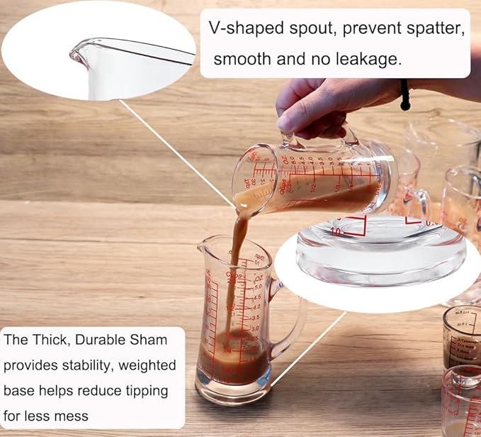 - Smooth Pouring & Easy Cleaning – The precision V-shaped spout measuring beaker ensures drip-free pouring of small volumes, from espresso to sauces. Its non-porous surface makes this liquid measuring cup glass quick to rinse and dishwasher safe