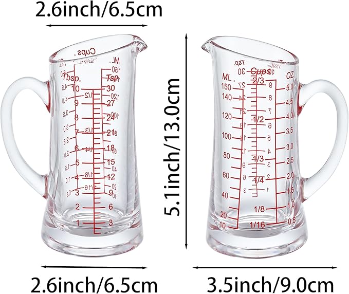 - Essential Kitchen & Bar Tool – This 5 oz glass measuring cup doubles as a shot glass measuring cup for cocktails, an espresso measuring glass, and a mini measuring cup for liquids. Perfect for bartenders, home mixologists, and everyday kitchen use