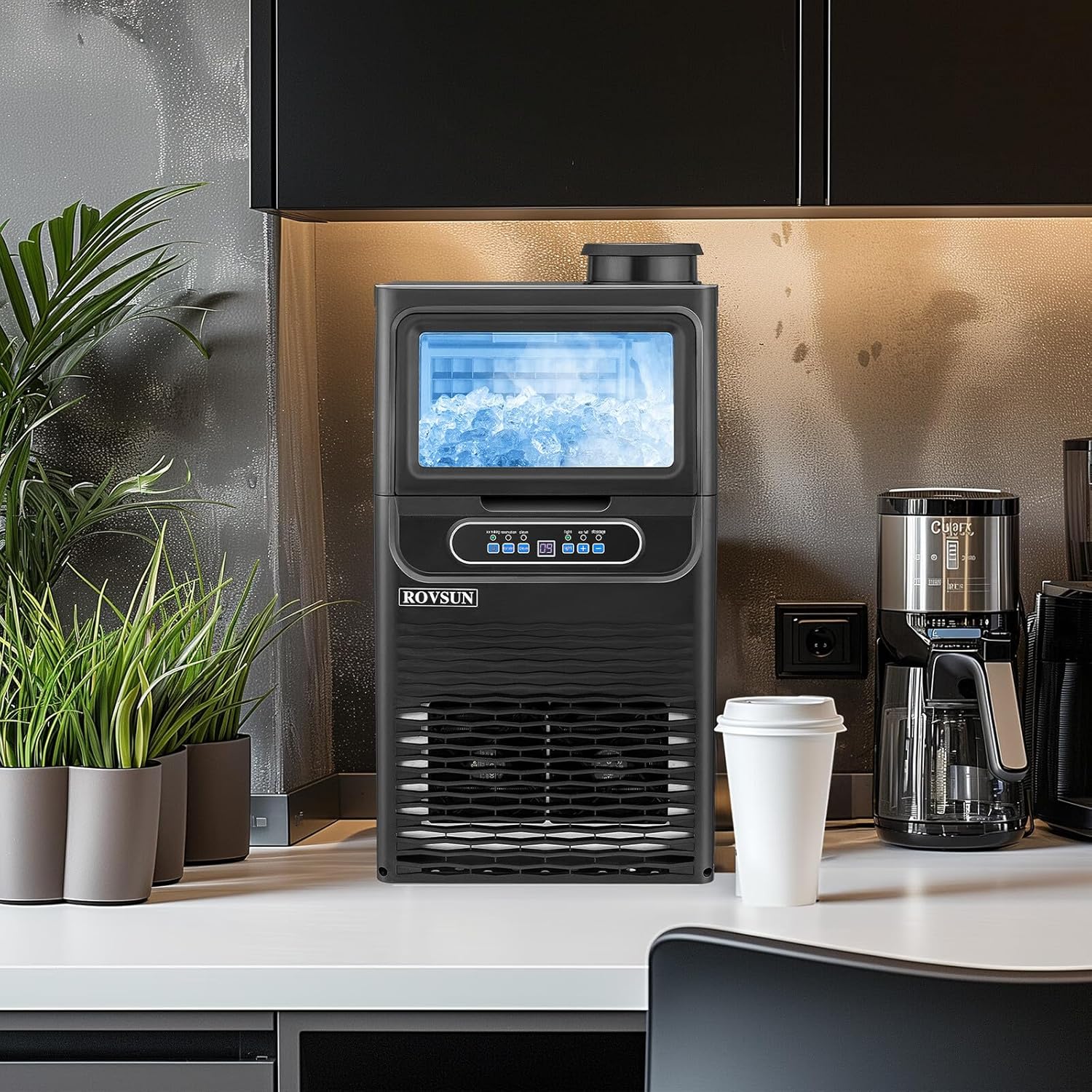 - 【Easy Operation】: Our ice machine is equipped with an intuitive and easy-to-use control panel. By pressing the (+) or (-) button, you can adjust the ice-making time and the thickness of the ice cubes. Our ice machine also has a 24-hour timing function, which can be timed to shut down at night and start up in the morning