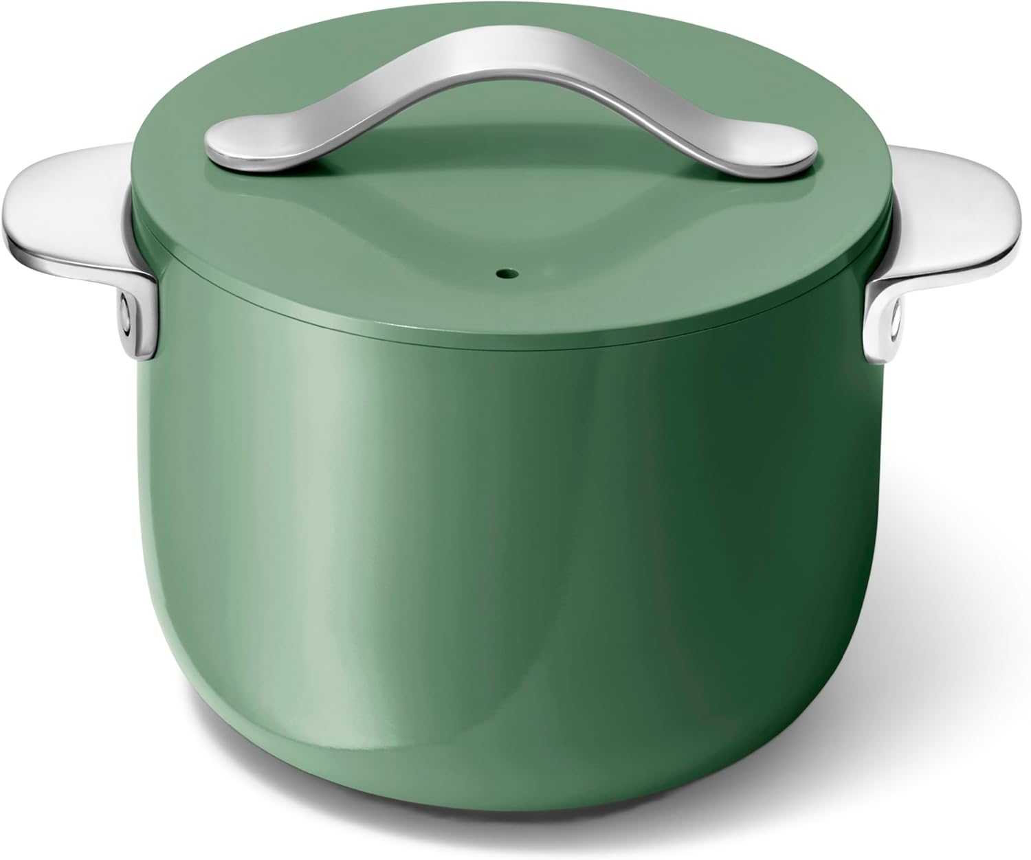 Caraway Petite Cooker - 2 Qt Ceramic Coated Pot - Free From Forever Chemicals - Perfect for Rice, Grains, or Sauces - Sage