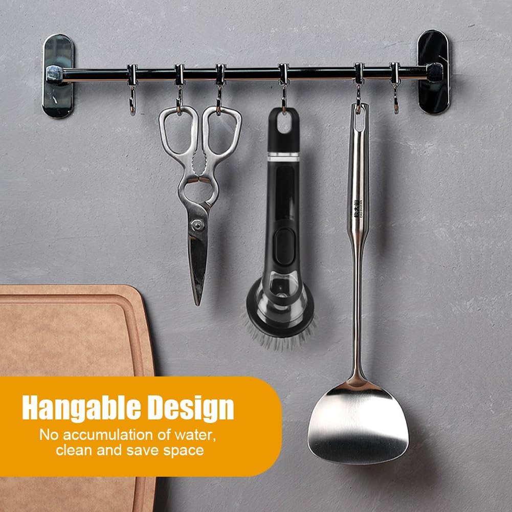 - 【VERSATILITY】Kitchen brushes can be used to clean pots and pans, sinks, countertops, stoves, tiles, cutting boards and more. Our dish brush with soap dispenser can meet your many cleaning needs. Not only does it make your cleaning easier and more efficient, it also protects your hands from detergents while leaving your items cleaner and shinier