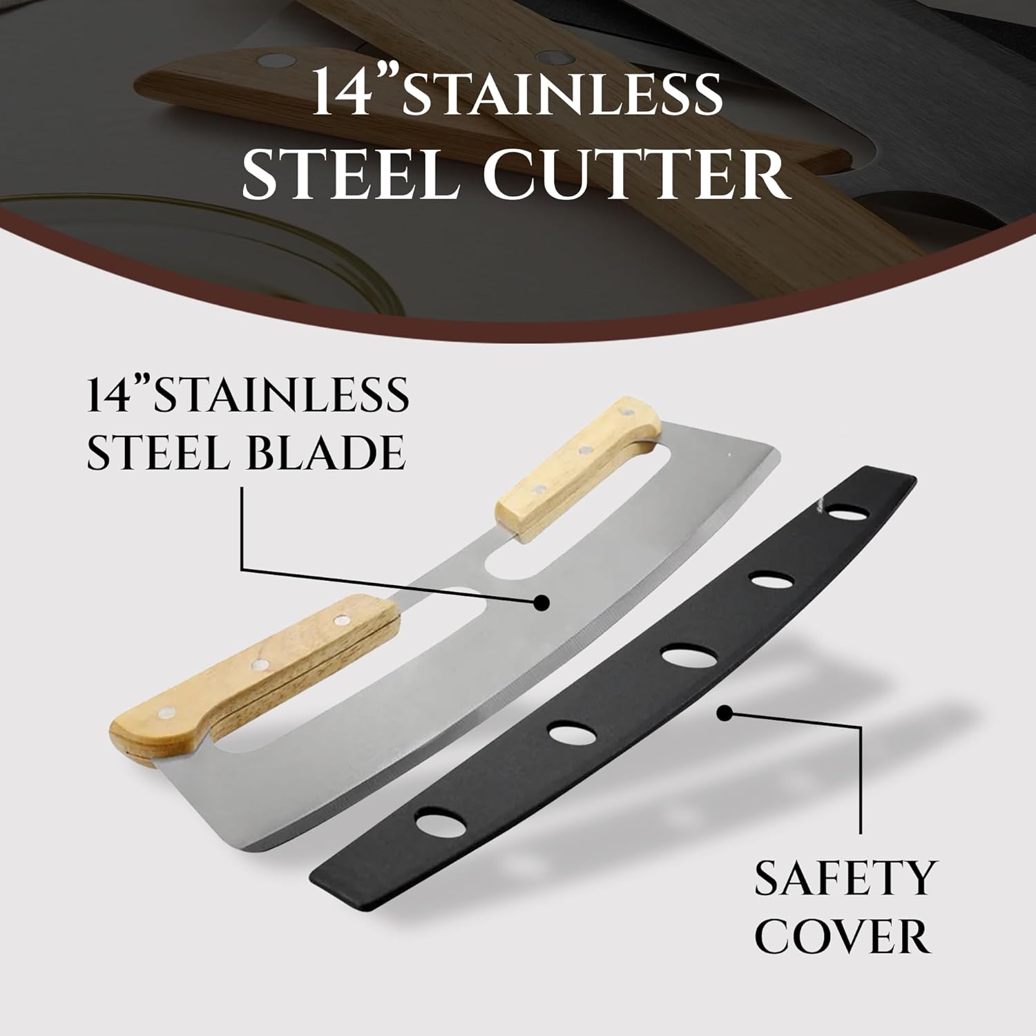 - [CONVENIENT & SAFE] - The large wooden pizza board is perfect for home and restaurant use. The sharp rocker pizza cutter blade comes with a safety cover for secure storage.