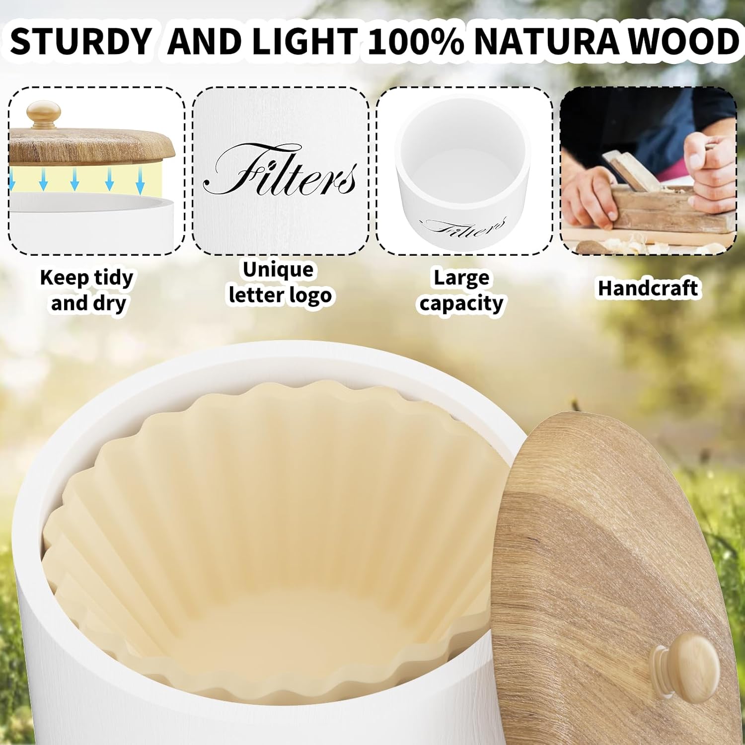 - COFFEE FILTER CONTAINER : Our coffee filter holder storage made of Wood, not easy to break and deform, which can provide you a comfortable service for a long time. The smooth interior and surface are very easy to clean, just wipe with a damp cloth. Comes with a lid to keep the filter away from dust, moisture and other clutter