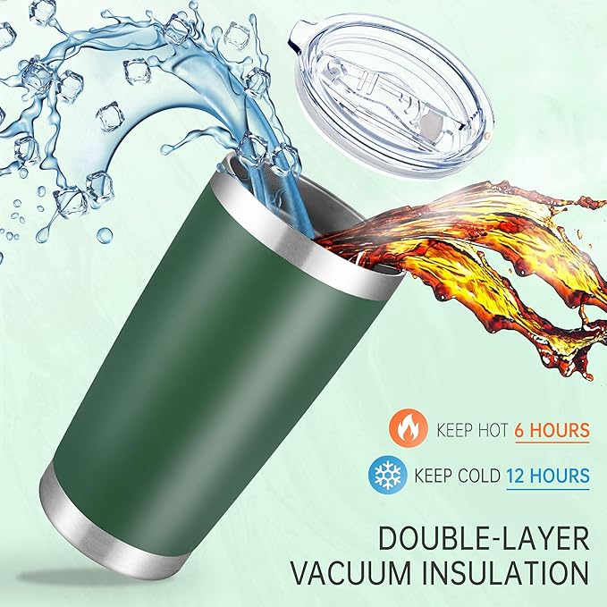 20 oz Tumbler Stainless Steel Tumblers with Lid Double Wall Vacuum Insulated Coffee Mug 20oz Powder Coated Cup for Hot and Cold Drinks, Dark Green, 1 pack
