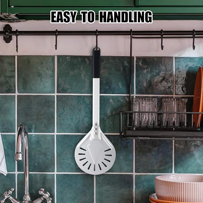 - [MORE PROFESSIONAL] This professional pizza turning peel is equipped with a diameter of 6" of head and 15.7" of the handle. It is extremely portable. The included professional silicone handle cover prevents your hands from being burned.