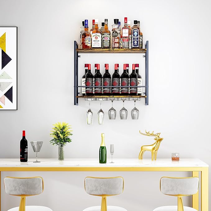 - 【Versatile Decor Hub】Suitable as a wine rack wall mounted in kitchens, home bars, or commercial spaces like cafes. The included wine glass rack elegantly displays stemware alongside plants or artwork