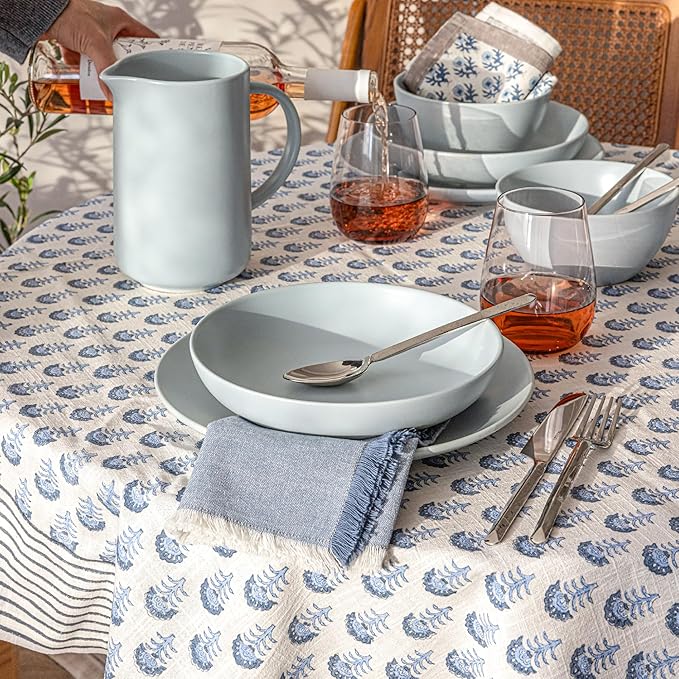 - MIX-AND-MATCH: All our hand-screened tablecloths use the same color palette to easily blend with all of our collections. Feel free to mix our prints with our woven stripes or even our 100% solid linens to create your own personal style.