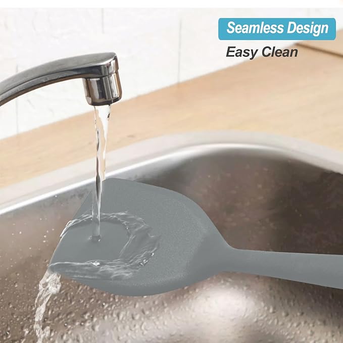 Silicone Spatula Turner Set, High Heat Resistant Spatulas with Seamless One Piece Design, Nonstick Rubber Flippers Utensils for Baking & Cooking,BPA-Free, 2 pack,Black (Grey)