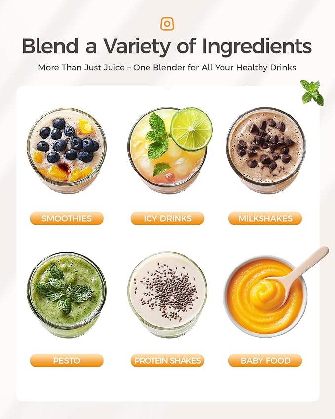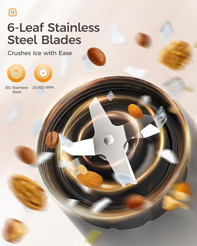- Powerful Performance, Stronger Ice-Crush β Our smoothie blender is equipped with a 1000W powerful motor that spins at 20,000rpm for high-speed blending. It effortlessly crushes ice and blends frozen fruits to perfection. Whether you're making protein shakes, frozen cocktails, or your favorite smoothie recipes, this small blender for smoothies delivers refreshing, customized drinks to keep you cool all summer long!