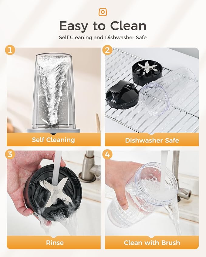 - Effortless Cleaning, Hassle-Free Maintenance β Cleanup is a breeze with the included spatula and straw brush. All parts are dishwasher safe, eliminating stubborn residues and leaving your cups spotless and ready for your next blend in no time!