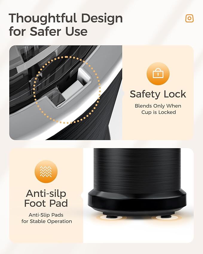 - BPA-Free & Durable To-Go Cups β Sip safely and confidently with our personal blender for shakes and smoothies, featuring BPA-free Tritan cups that are shatter-resistant and built to last. These premium-quality cups keep your drinks fresh and safe, from morning smoothies to post-workout shakes.