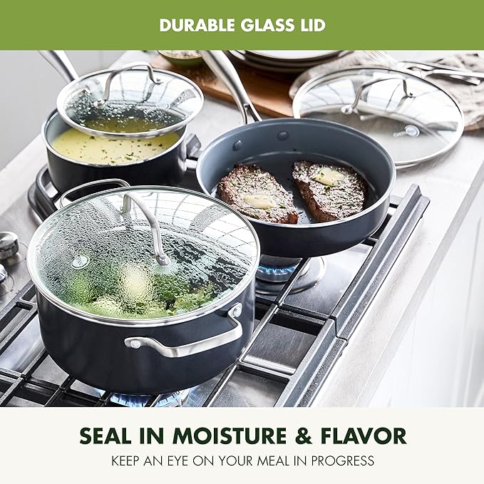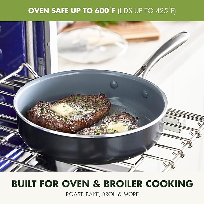 - HEALTHY CERAMIC NONSTICK: GreenPan’s toxin-free ceramic coating is completely PFAS-free for effortless food release and safer cooking.