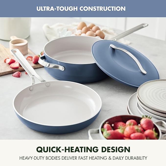 GreenPan Nova 10” Frying Pan Skillet and 4.37QT Sauté Pan with Lid, Oprah’s Favorite Things 2024, PFAS-Free Ceramic Nonstick, Induction Suitable, Sear, Fry, Broil, Dishwasher & Oven Safe, Ocean Blue
