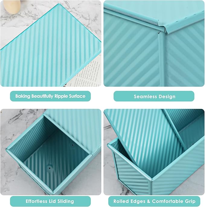 - Bread Loaf Pan with Lid: Unique blue hue pullman loaf pan, stylish addition adds charm and elegance to your kitchen decor.