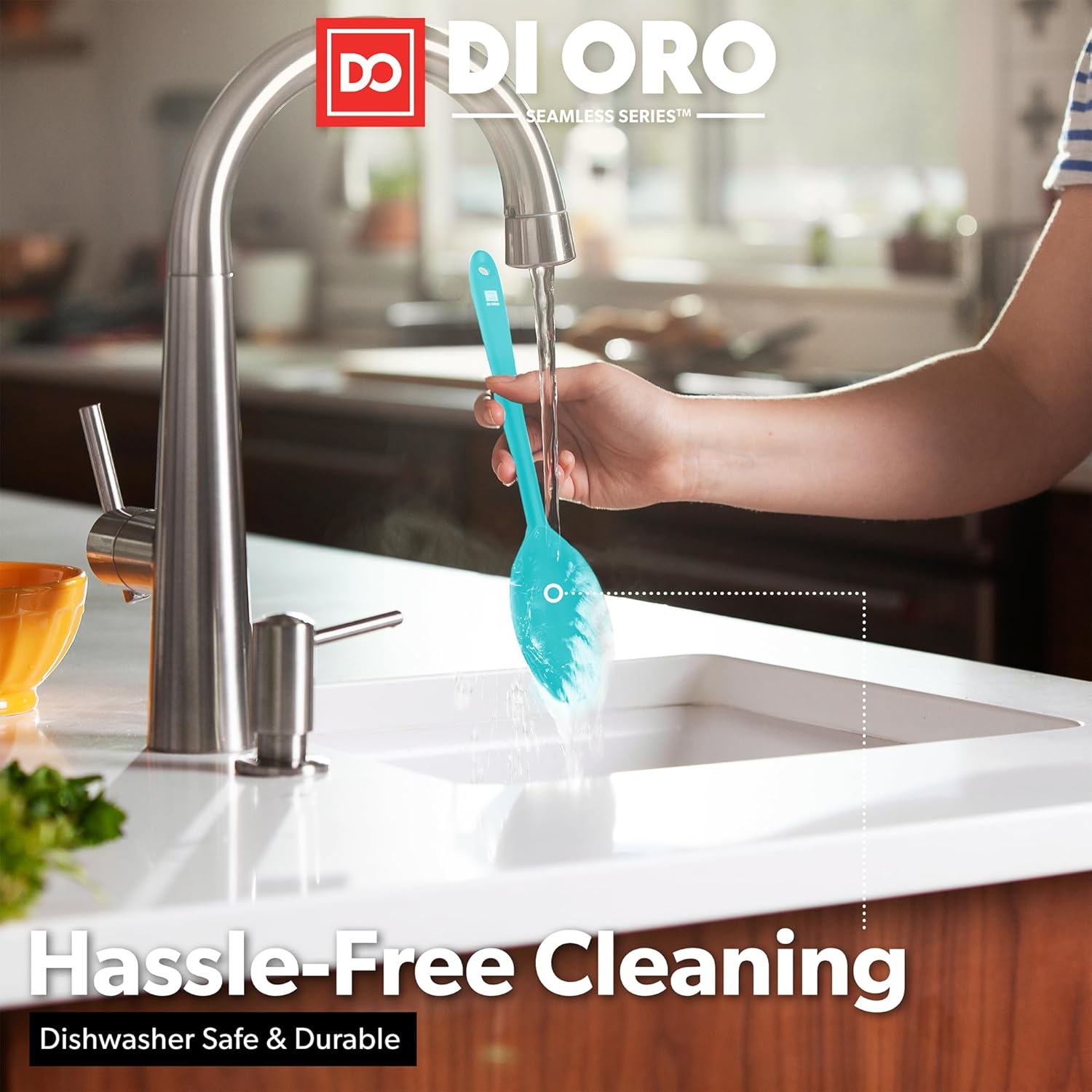 - ONLY THE BEST β By popular demand, we have added a 2-Piece Silicone Spoon Set to our Award-Winning Seamless Series line of kitchen utensils. The DI ORO Seamless Series Slotted and Solid Spoons are made with food grade, BPA Free, and LFGB Certified Silicone. Built to withstand the heat, these essential kitchen tools are heat-resistant up to 600Β°F, which means you will never melt your favorite spoons.