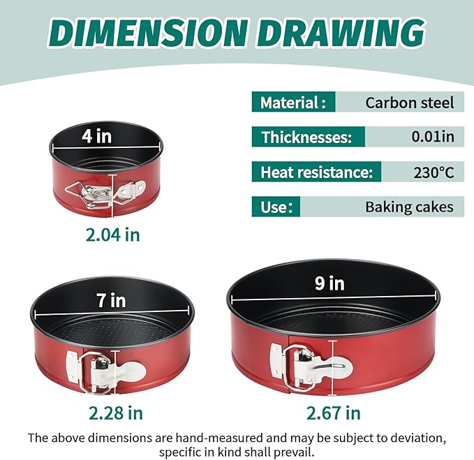 - 【Baker’s Friend 】: Set includes (4-inch,7-inch,9-inch) springform pan,deep cake pan set lets you bake everything better for perfect results with cheesecake, brownie, deep dish pizza, lasagna, casserole, and quiche.